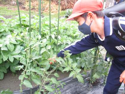 朝 畑のお手入れ 公開日 2022/05/17 更新日 2022/05/17 校長室から 5月17日(火)、登校するとすぐ畑に子どもたちがやってきます。 植えた苗が大きくなっているかを見ながら、水をあげています。「もう、トマトができているよ」と見せてくれました。