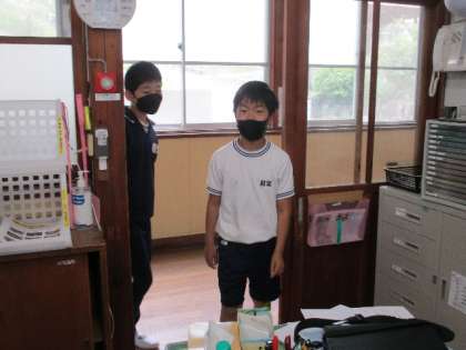 則定小学校では、自分の名前と何の用事かを言ってから、入室することになっています。とてもはっきりとした大きな声で言っているので、朝からとても気持ちいいです。