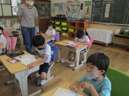 5月23日(月)、1年生は国語で「さとうとしお」の学習をしています。