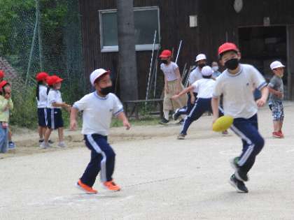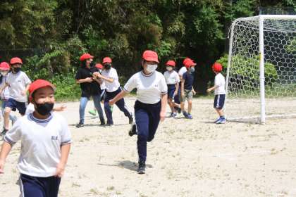 青空の下、学年関係なく、みんなで思い切り運動場を駆け回りました。