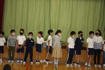 5月30日(月)、全校朝会で5月の詩をみんなで言ってみました。