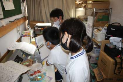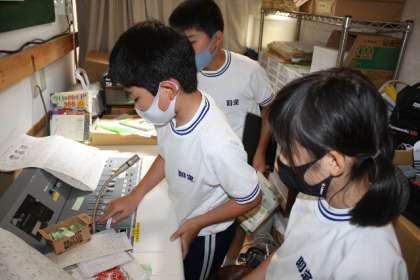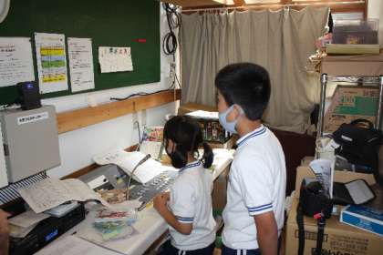 お昼の放送 ヘルシー委員会も 公開日 2022/05/30 更新日 2022/05/30 特別活動 5月30日(月)、お昼の放送の様子です。 フレンドリー委員会の二人が、読むことを分担して放送します。最近は、ヘルシー委員会が、スリッパチェックの結果を発表します。ちなみに、今日は男子トイレも女子トイレもスリッパの整頓が◎でした。素晴らしいです。 委員会