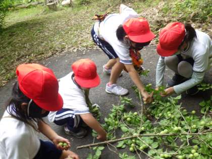 みんなでたくさんの梅を採らせていただきました。鈴木さん、声をかけていただき、本当にありがとうございました。