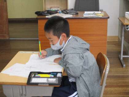 6月2日(木)、8組さんはそれぞれ字を書く練習です。