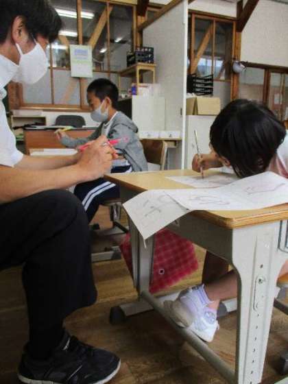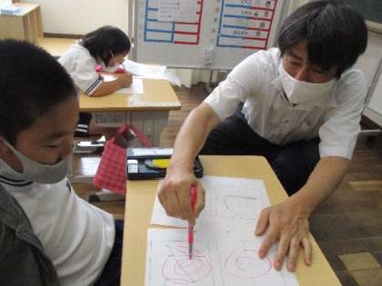 はみ出さないように文字をなぞったり、お手本をじっくり見て字をまねして書いたりできるようになりました。大きな花丸をもらいました。