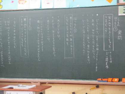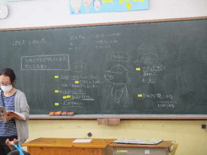 黒板を見ると、どんなことをみんなで考えたかがわかります。