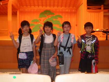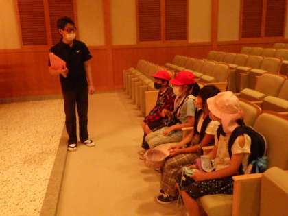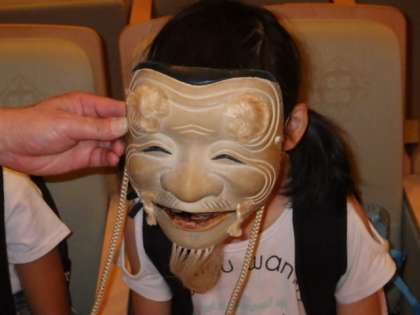 能楽堂でお面をつけてもらったり、コンサートホールの中に実際に入ったりしました。
