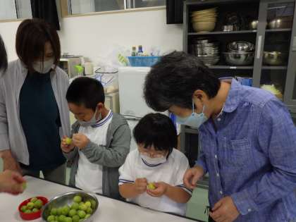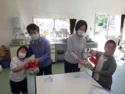 8組が梅シロップづくりに取り組んでいます。公務手さんたちに教えていただき、この前収穫させていただいた梅を洗って砂糖で漬けました。いつ完成するか、楽しみです。