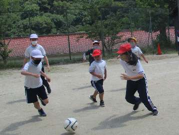6月9日(木)、わく2のサッカーの様子です。学年関係なく、思い切り走り回っています。