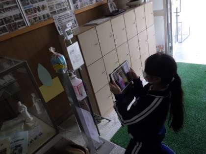 学校のいろいろなところに作品が飾られています。見てみると、とても楽しいです。