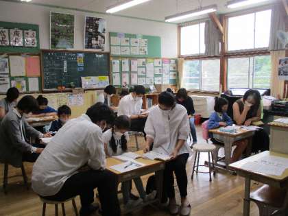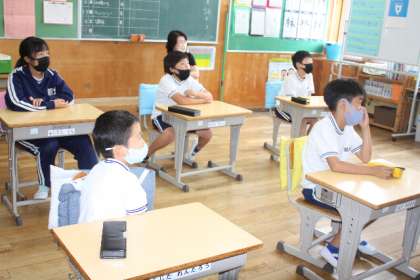 5年生の1時間目の前半は、キャンプの説明会です。お家の方と一緒に持ち物等を確認していきました。