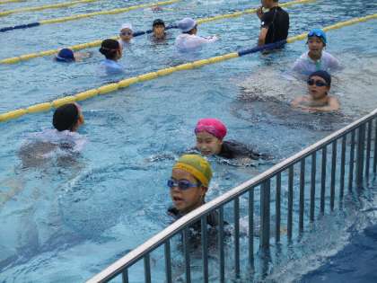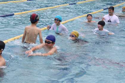 3年生以上は、みんなで水になれる活動をした後、クラス別に分かれて練習を始めました。