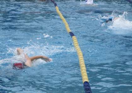 水しぶきをあげて、ぐいぐい泳いでいました。