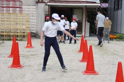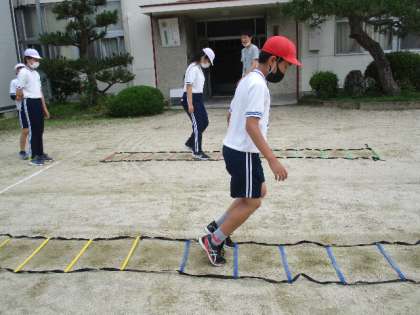 チャレンジ 高学年 公開日 2022/06/24 更新日 2022/06/24 学校の特色ある活動 6月24日(金)、ラダーやコーンを使った高学年のチャレンジです。だんだん足さばきが速くなってきました。 5年 6年