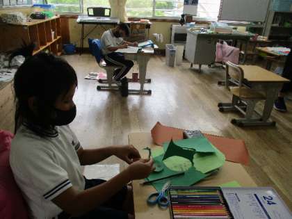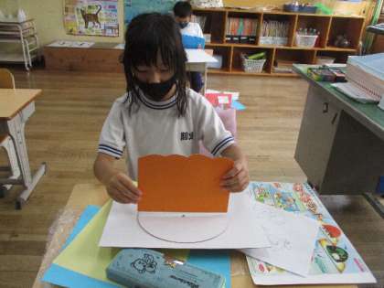 6月24日(金)、3年生はくるっと回ると場面が変わる工作の作製中です。