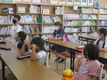 あじさい読書まつりの反省をしていました。うまくできたところ、うまく手かなかったところをみんなでしっかり話し合いました。次回に生かしていけそうです。
