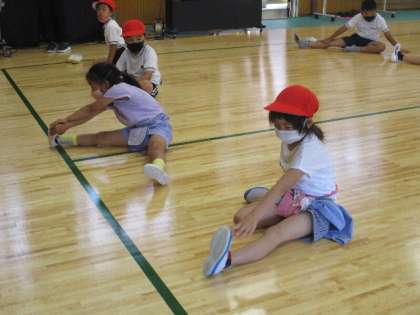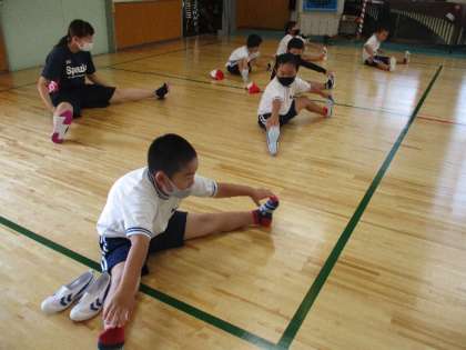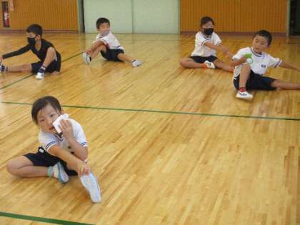 チャレンジ 低学年 公開日 2022/07/01 更新日 2022/07/01 学校の特色ある活動 7月1日(金)、朝からとても暑かったので、少し心配しましたが、わく1、わく2も外で遊べないことを予想し、チャレンジで少しだけ体を動かすことにしました。 1年生は柔軟運動。かなり柔らかい子もいて驚きました。 1年 2年