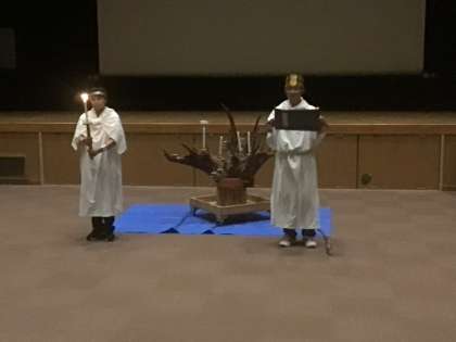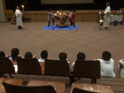 雨のため、講堂でのキャンドルサービスになりました。