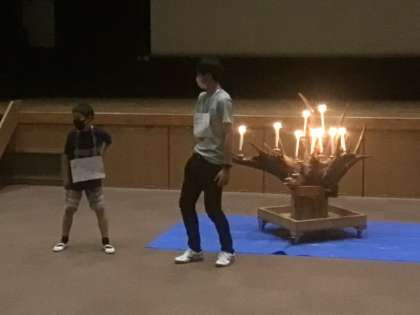 大きなロボット 公開日 2022/07/06 更新日 2022/07/06 お知らせ キャンドルサービスのスタンツは継続中。則定メンバーが最初に登場したのは、大きなロボット。最後はみんなで力を合わせて抜きました。