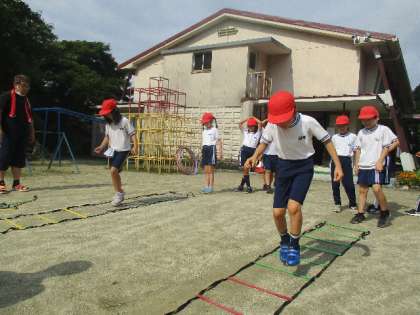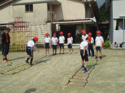 チャレンジ 中学年 公開日 2022/07/08 更新日 2022/07/08 学校の特色ある活動 7月8日(金)、中学年は校庭で、高学年が練習していたラダーを使いました。細かく足を動かすのはなかなか難しくて、苦戦している中学年でした。最後はバックにも挑戦していました。 3年 4年
