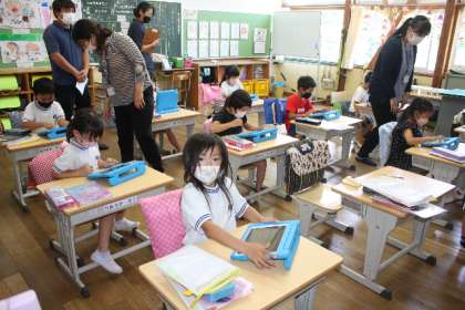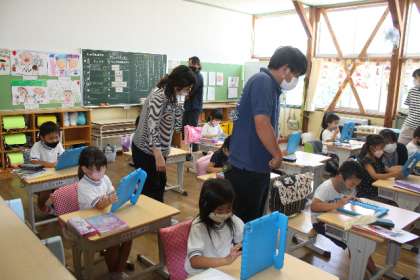 7月6日(水)、1年生がお世話になったこども園の先生方が小学校での様子を見に来ました。