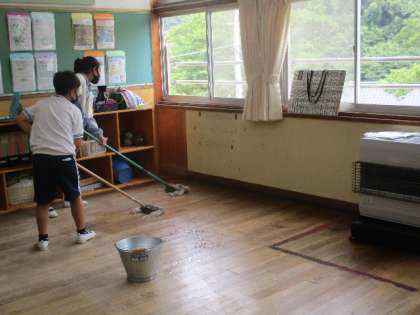 そして、仕上げは4〜6年生がきれいに床にワックスをかけました。