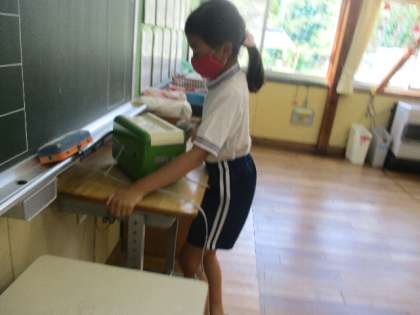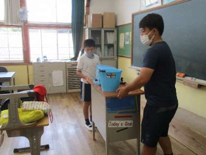全員で協力して、時間内に元通りの教室になりました。