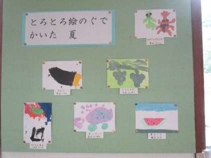 2階廊下の図工の作品です。個別懇談で見えた折には、ぜひご覧ください。