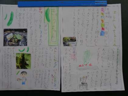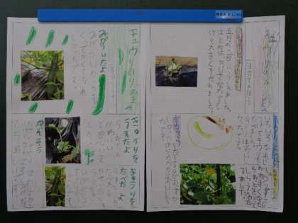 7月14日(木)、2年生が育ててきた野菜のことを新聞にまとめました。愛情をこめて育てたことがわかる、とてもかわいい新聞が出来上がりました。