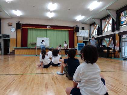則定通学団は、集会室で行いました。みんなの反省を聞きながら、てきぱきとまとめている高学年です。