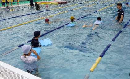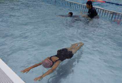 どんどん泳ぎが上手になっています。低学年もきれいなふし浮きができます。