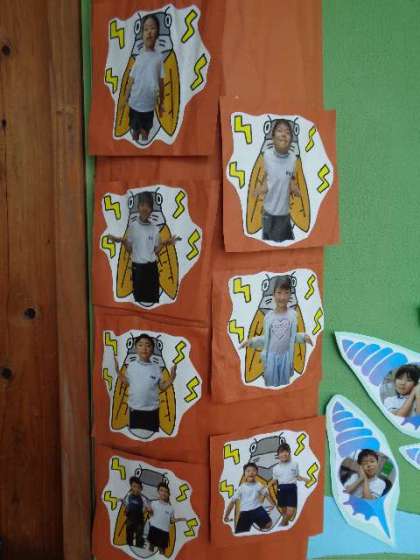 7月もたくさんの子がチャレンジしました。「みんみん」という題でしたので、セミに変身です。