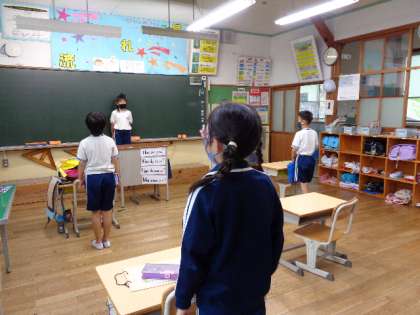 落ち着いて、朝の会が始まっています。