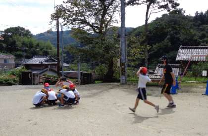 地震の後に、土砂崩れが起きるかもしれないという設定のもと、運動場、教室、校庭など様々な場所から、個々に校庭に集合し、集会所に避難しました。