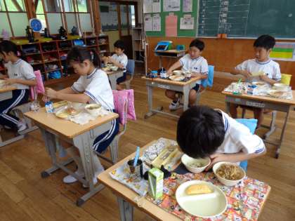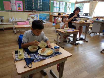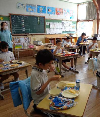 パンに切れ目を入れて、自分で焼きそばパンを作っている子もいました。