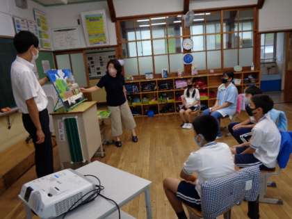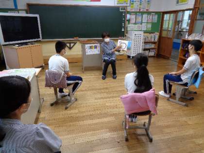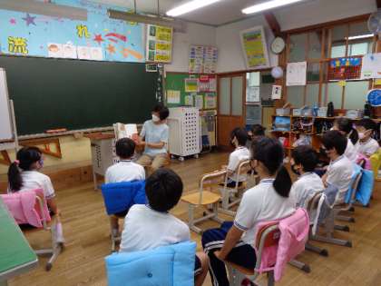 ハグまーま読み聞かせ 公開日 2022/09/08 更新日 2022/09/08 学校の特色ある活動 9月8日(木)、朝の活動はハグまーまさんの読み聞かせでした。天候の悪い中、読み聞かせに来てくださいました。 6年はガーナに住む「そのこ」のお話を聞き、5年生は大型絵本で楽しみました。 3・4年生は一緒に、鬼と子どものお話です。 3年 4年 5年 6年