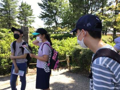 五重塔と正岡子規の有名な法隆寺の句碑の前で。