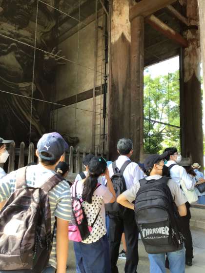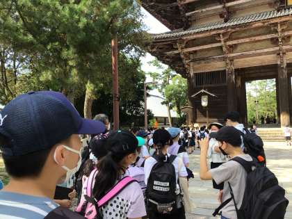 駐車場を出ると、すぐ鹿さんに遭遇しました。 まずは、南大門の仁王さんにごあいさつですごあいさつです