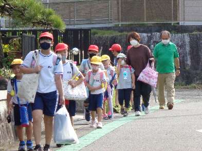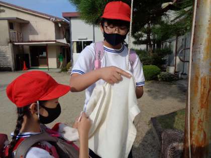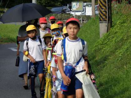 9月14日(水)の朝も、6年生がいなかったため、通学団をまとめたり、国旗の旗揚げをしたりしている頼もしい5年生です。