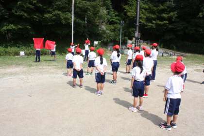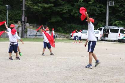 応援、赤組の初練習の様子です。詳しくは、本番のお楽しみです。