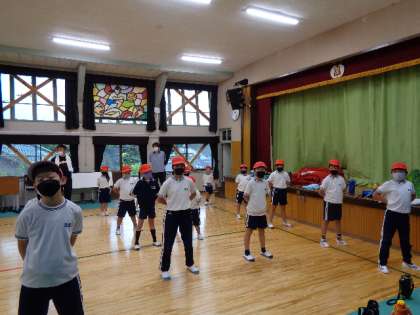 9月20日(火)、朝は台風の雨がまだ残っていたので、1時間目の練習は「徒競走・リレー」から「開会式・リレーの順番確認」に変更になりました。