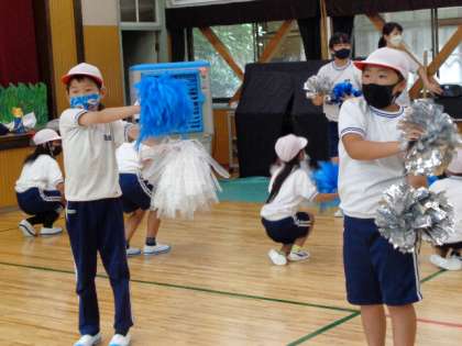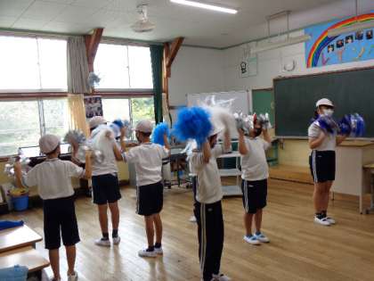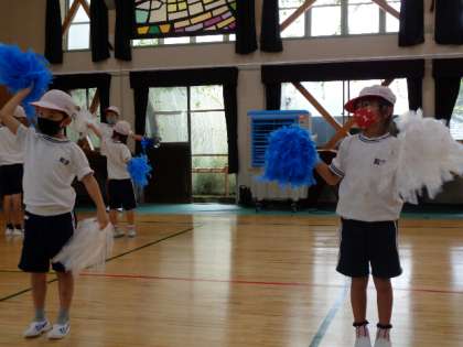 9月20日(火)、白は最初は教室で分かれて練習し、後半は集会室で全員で合わせました。ポンポンの音がどんどん大きくなってきます。