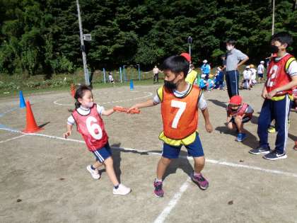 1時間目は、初めてのリレー練習です。4チームとも、順番通りに、バトンが最後まで渡りました。すごいです。