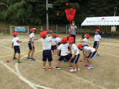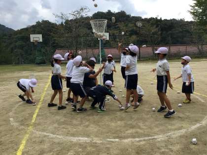 1〜3年生の玉入れです。前より玉がたくさん入れられるようになりました。