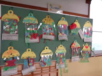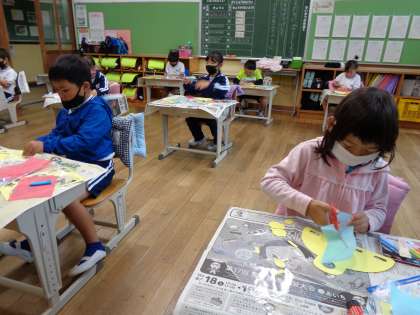 1年 図工 ひらひらゆれて 公開日 2022/10/07 更新日 2022/10/07 各学年から 10月7日(金)、1年生の図工の様子です。いろんなことを口にしながら、どんどん楽しそうに作っていきます。完成品もご覧ください。 1年