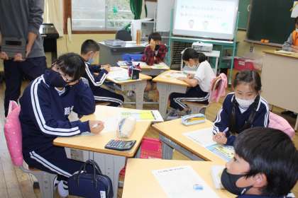 10月7日(金)、5年生がエコットの出前授業を行いました。身近な買い物から、輸入食品のことや地産地消、買い物で使われるプラスチックなど、様々な視点で考えました。積極的に発言し、前向きに取り組む5年生にエコットの方も喜んで見えました。