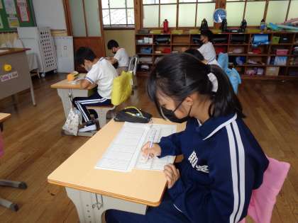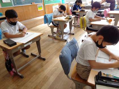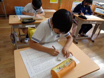 4年 120問漢字テスト本番 公開日 2022/10/11 更新日 2022/10/11 各学年から 10月11日(火)、何度も練習してきた120問漢字テストの本番の日です。もくもくと取り組んでいる4年生。これだけ覚える意欲と書き続ける集中力が素晴らしいと思います。 4年