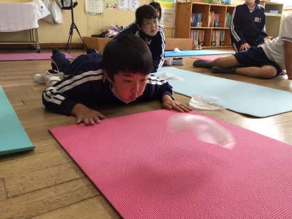 5年 保健学習 ヨガ 公開日 2022/10/12 更新日 2022/10/12 各学年から 10月11日(火)、5年生が保健学習の心身の健康の学習として、ヨガを体験しました。いつもとは違う筋肉を動かして、心も体もリフレッシュです。家でもやってみたいと感想に書く子もいました。ぜひ、続けてみてください。 5年