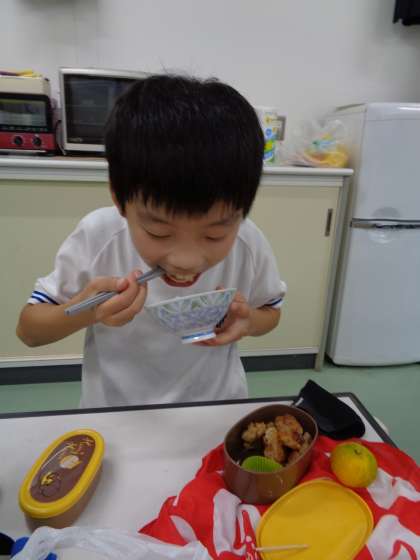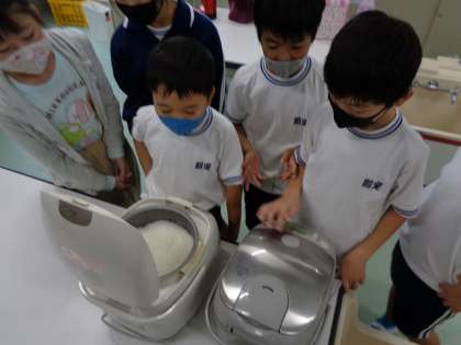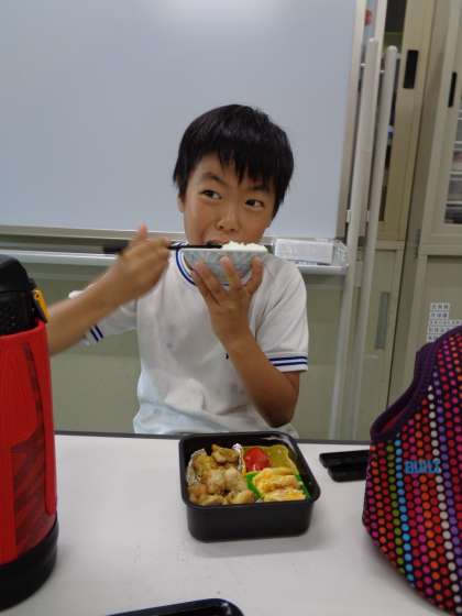 10月13日(木)、4年生が収穫した新米を思う存分食べました。お米が炊き上がると、いい匂いが漂ってきました。おかずは家から持ってきて、いよいよお米食べ放題です。最後は、少し体が重くなるまで新米を満喫しました。