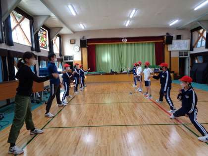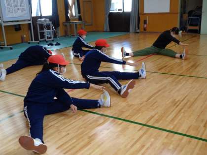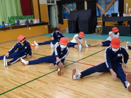 チャレンジ 高学年 公開日 2022/10/14 更新日 2022/10/14 学校の特色ある活動 高学年は、集会室で柔軟体操です。「体がかたいから」と言いながら、頑張っていました。じゃんけんで負けたら足を広げていくゲームでは、かなり広がっていても耐えていました。 5年 6年
